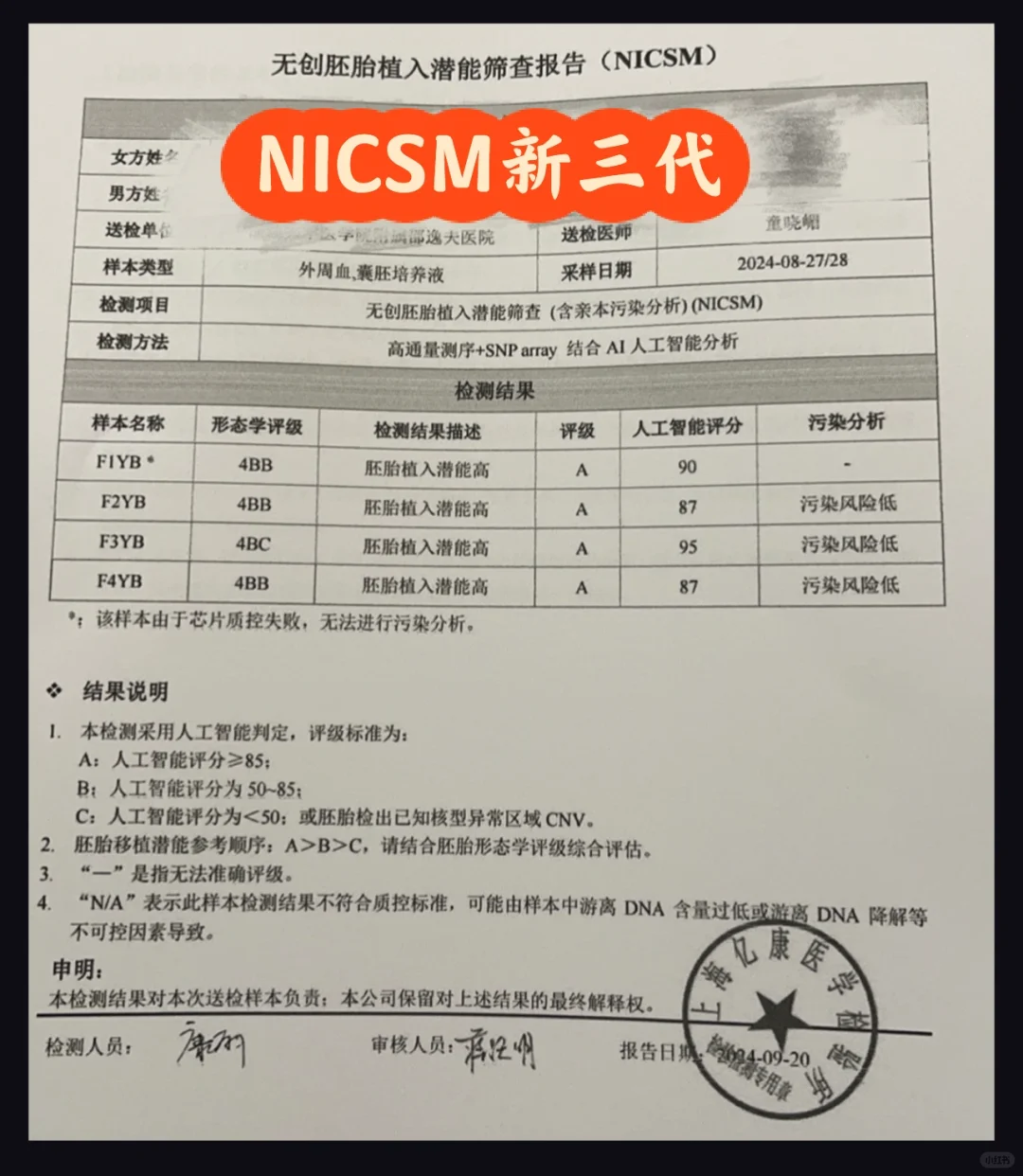 等了一个多月,终于胚胎筛查结果出来啦,因为选的新三代🧪,所以只是给到移植潜能筛查。结果显示4个全部都是A级,是个好成绩了。之前因为基础卵泡情况太差,一路促排也不乐观,所以选择了